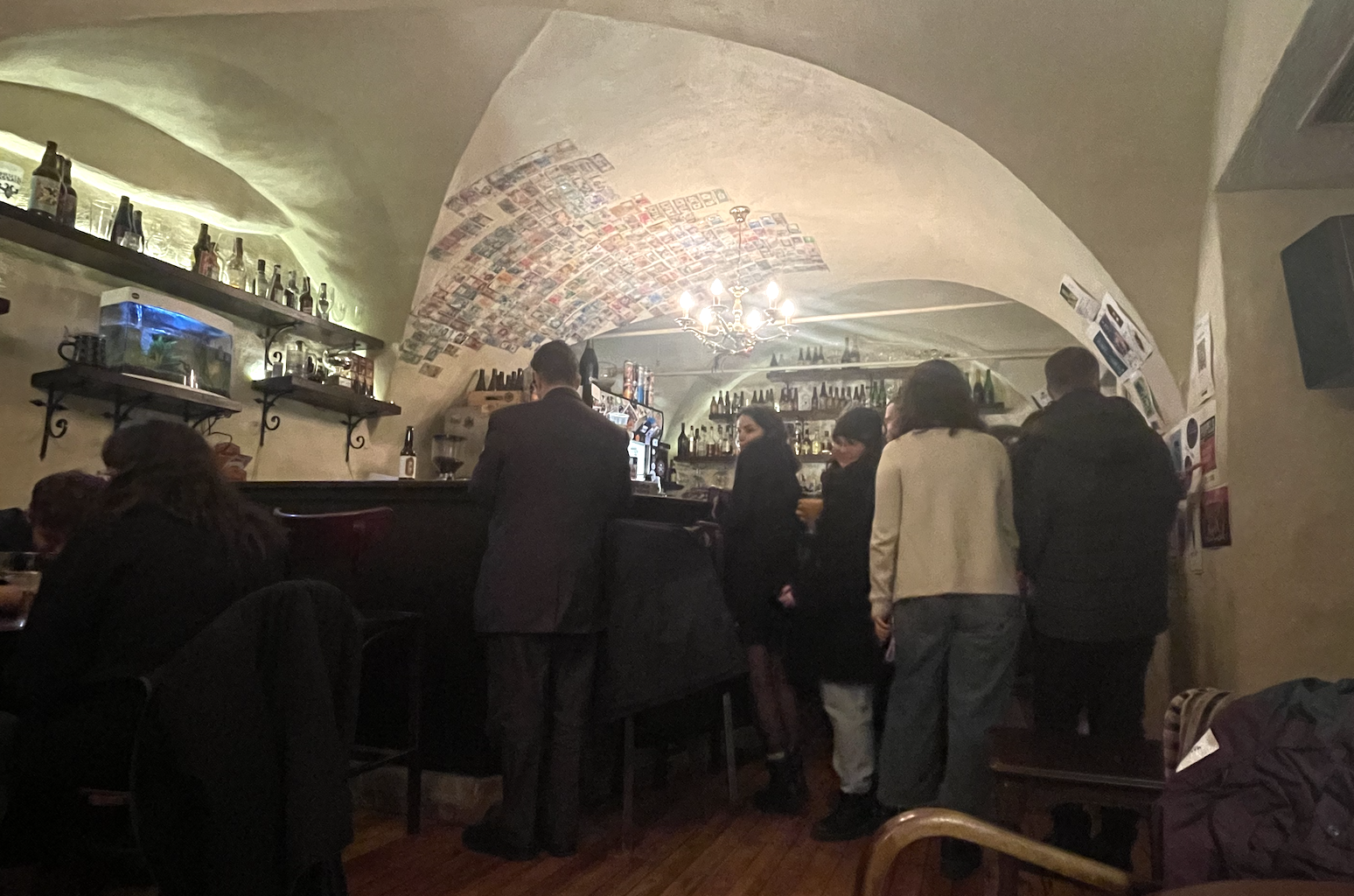 Once you hit the puppet theatre, the bar is behind you in a courtyard.